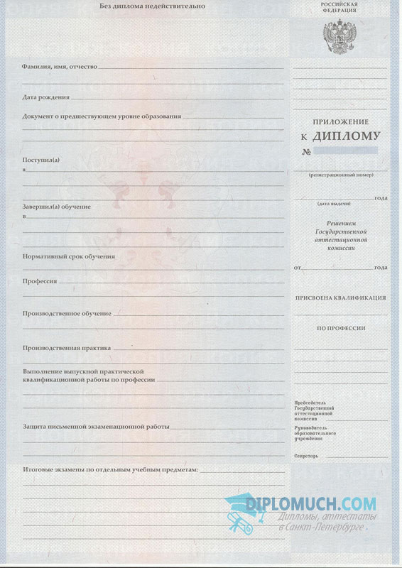 Диплом о начальном профессиональном образовании 2007-2010 года