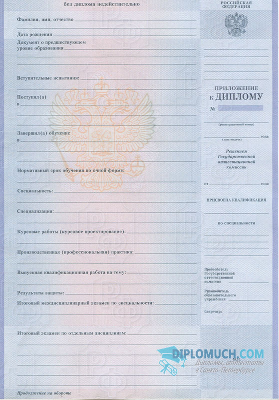 • Комплект: Диплом + твёрдая обложка + приложение;